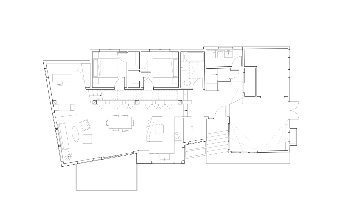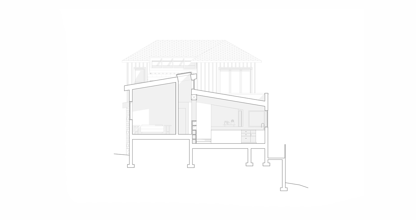 A series of building volumes nestle together into the forested hillside of the Sunshine Coast to form this single family residence,. Each volume is unique yet relates to its neighbor through materiality and proportion. These volumes also inflect upon the interior, resulting in a plurality of spatial experiences, none of which are the same. A relatively open plan with strong sightlines encourages socializing, while many nooks and alcoves make it possible to spend time on one’s own. A simple pallet of painted drywall and wood creates a sense of lightness that is still grounded - white walls scatter the day’s light throughout the interior, while wooden elements lead the eye along and form the regularly touched surfaces. Ample shelving will display the client’s diverse collection of art and artifacts.