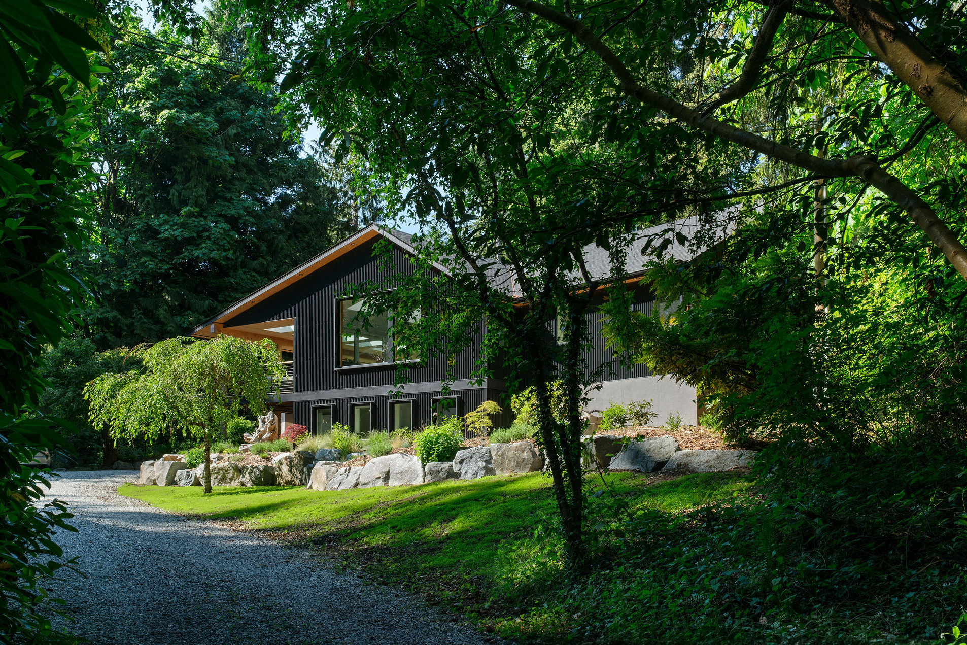 This is a major renovation to a small single family home. A bedroom wing was built off of the main living space at a skewed angle as a way to introduce a more dynamic set of views and spatial sequences.