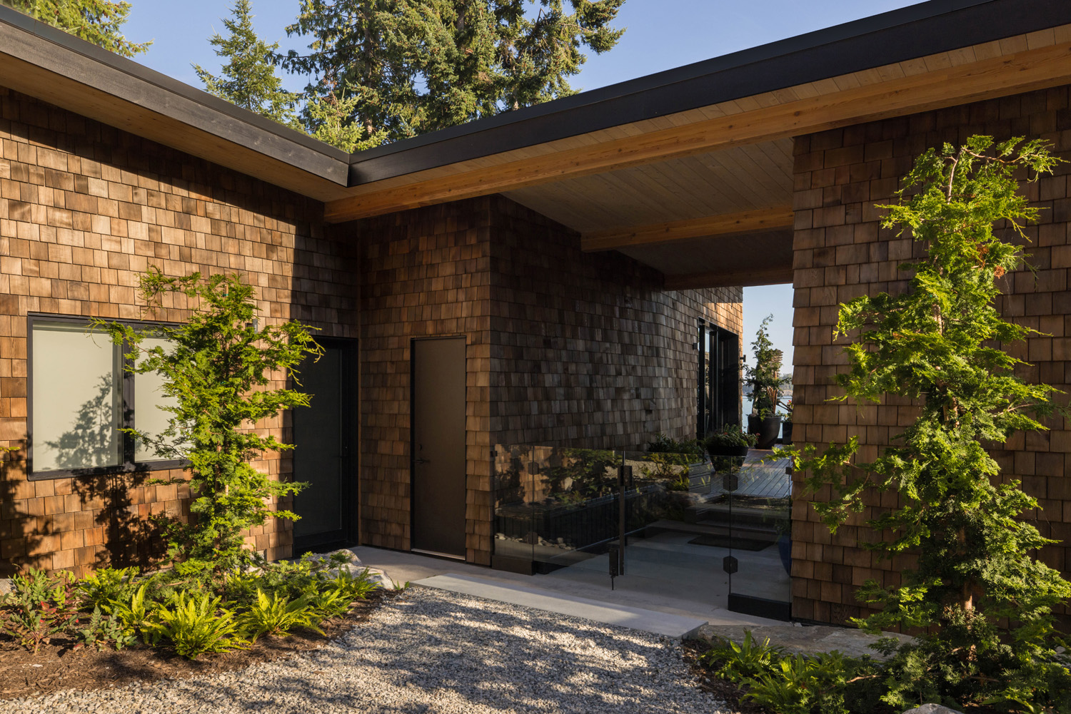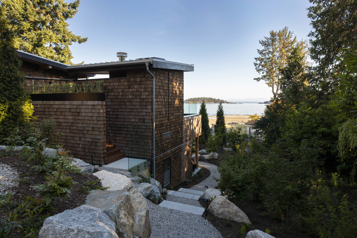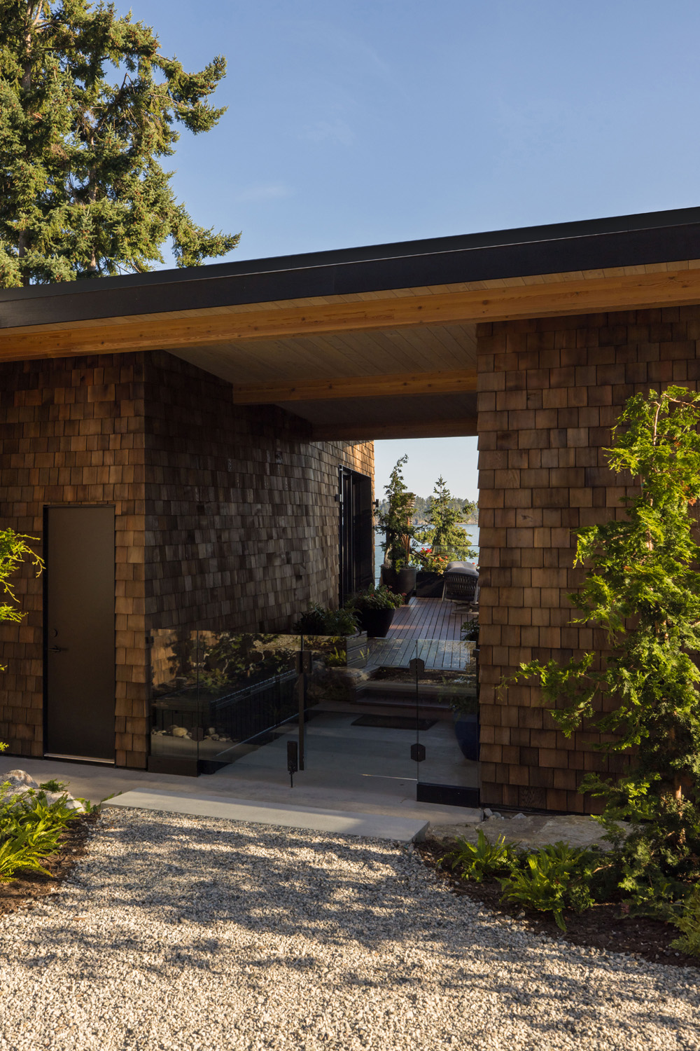 This existing waterfront property underwent a major renovation and addition to include a rooftop guest suite and patio with a spa. Views to the water are revealed and framed by the building as one navigates through the separate rooms. Each space is linked by a wood shingle material consistency.